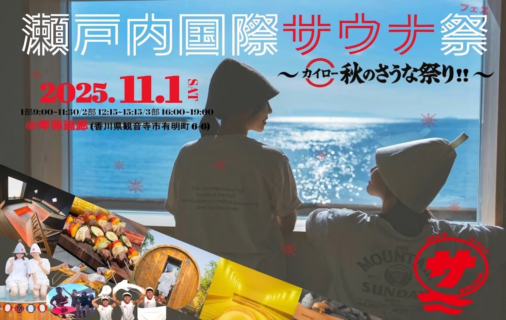 日本最多種の11種のサウナと7種の水風呂を持ち、『ニフティサウナランキング2025』で全国1位を獲得したサウナ施設『琴弾廻廊』は、11月1日(土)に『瀬戸内国際サウナ祭 2025秋 ~カイロー秋のサウナ祭り~』を開催いたします。
